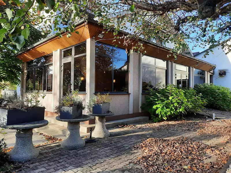 - Maison initiale : bar/restaurant avec terrasse, partie cuisine sur l'arrière, 11 chambres au dessus (sur 2 niveaux),