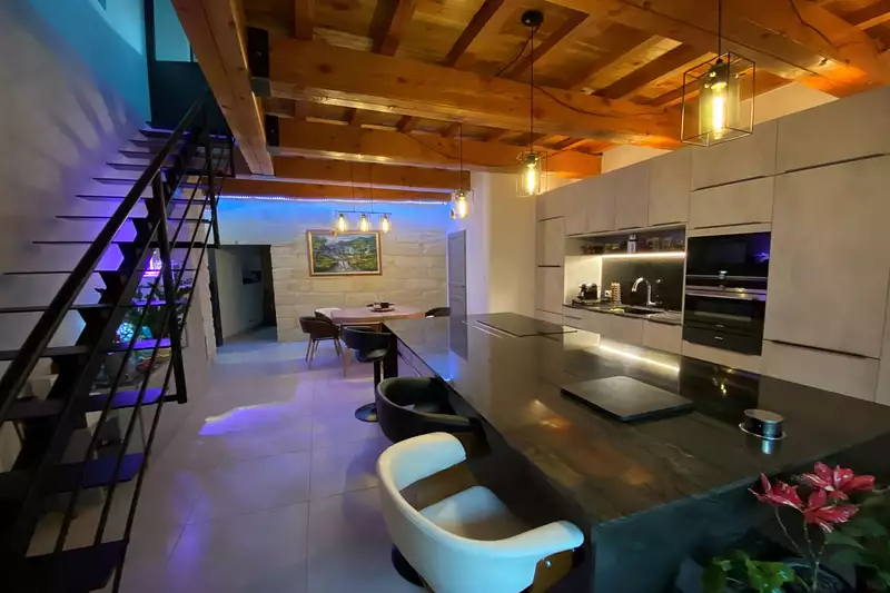 Au coeur de la cité ducale d'UZÈS. Nous vous proposons ce magnifique immeuble composé de 3 plateaux dont un en duplex avec terrasse couverte et vue sur le premier duché de FRANCE. Au rez-de-chaussée, le hall d'entrée ouvre sur un bel escalier avec sa rampe classée. Une partie à aménager d'une superficie de 40m2 en commerce, garage ou bien en logement, et 40m2 de superficie à aménager donnant sur une cour d'environ 30m2. 1er : Bel appartement de 80m2 avec cuisine équipée donnant sur une terrasse, beau salon avec poutres apparentes, une chambre et salle d'eau avec wc. 2e : appartement en duplex de 175m2 avec sur le premier plateau une somptueuse cuisine équipée, salon télé, une chambre et salle d'eau avec wc. Sur le deuxième plateau, cuisine équipée donnant sur une terrasse couverte avec vue sur le Duché, un salon, une chambre et salle d'eau avec wc. Plancher chauffant rafraichissant au gaz de ville. Adoucisseurs d'eau. Splendide rénovation avec matériaux de qualité. Très rare à la vente ! Possibilité de projet familial ou bien locatif et commerce. Consommation énergétique : 111 kw/m2/an Emission de gaz à effet de serre : 16 Co2/m2/an Date des diagnostics : 27/02/2023 Les honoraires sont à la charge du vendeur Les informations sur les risques auxquels ce bien est exposé sont disponibles sur le site www.georisques.gouv.fr Ce bien vous est présenté par Grégory Vernaz agent commercial indépendant enregistré au R.S.A.C de Nîmes sous le numéro 979 178 670.