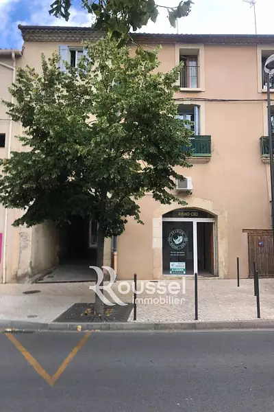 Poussan centre ville emplacement n°1 local commercial en rez de chaussée de 27 m² offrant une pièce principale avec vitrine et climatisation, une réserve et une mézzanine.
