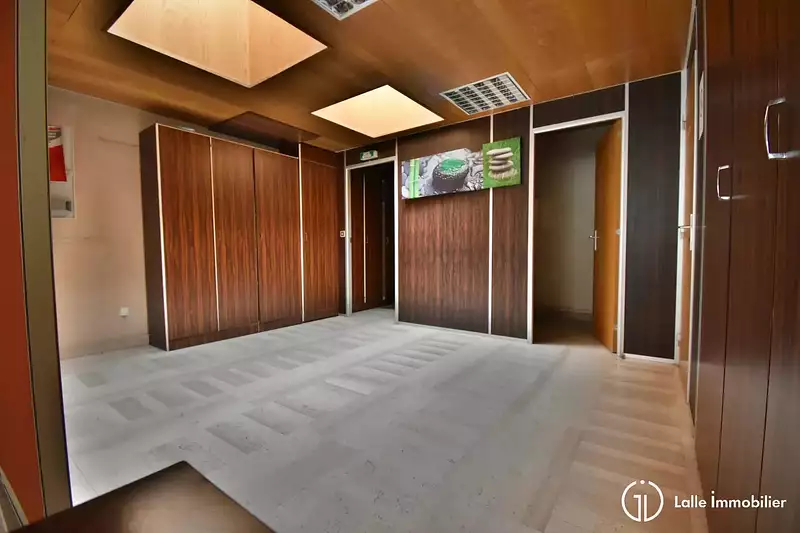 Au rez-de-chaussée, vous trouverez un bel espace de reception de 87 m2, deux bureaux, deux pièces supplémentaires pouvant faire office de bureaux, d'un espace sanitaire. A l'étage, vous disposerez de deux bureaux supplémentaires ainsi que d'un espace sanitaire. Pour terminer, le sous-sol vous offrira 50 m2 de stockage ou d'archive. Vous pourrez également profiter du parking privatif pour ce local commercial.