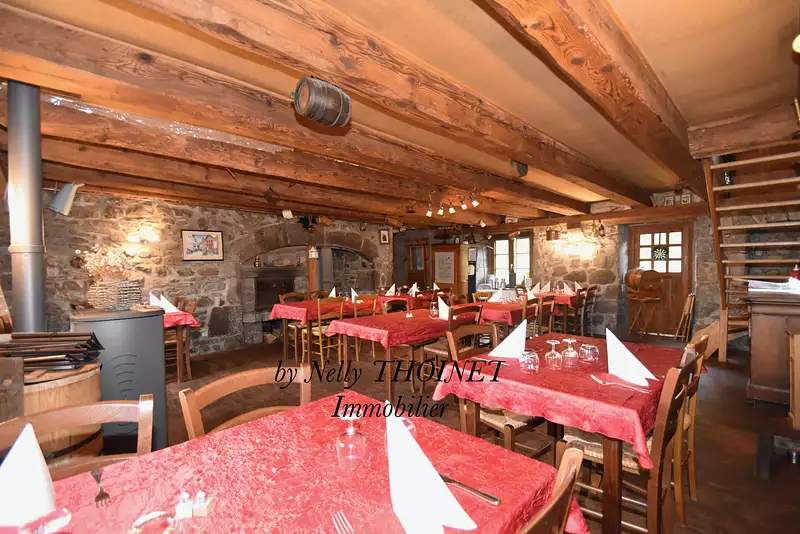 Si vous êtes amoureux de vielles pierres, vous tomberez sous le charme de cet ancien corps de ferme de style longère qui daterait de 1852. Il a su conserver toute son authenticité à travers les siècles. Au pied de la station de Super Besse et du lac Pavin, sur cet axe principal, c'est un emplacement de premier choix et incontournable. Passage inévitable pour une clientèle locale et touristique et ce, à toutes saisons. Pour la partie professionnelle, elle se compose au rez-de-chaussée, une salle pouvant contenir douze couverts avec bar, une salle de restaurant pouvant contenir quarante couverts, d'une cuisine professionnelle et d'un WC avec lave mains. A l'étage, une seconde salle pouvant contenir soixante couverts, une buanderie, une réserve et un WC avec lave-mains. A l'extérieur, une terrasse. Un décor authentique et de caractère, typiquement Bessard, entre pierre, bois et cantou, aucun doute, c'est une vraie Auvergnate ....