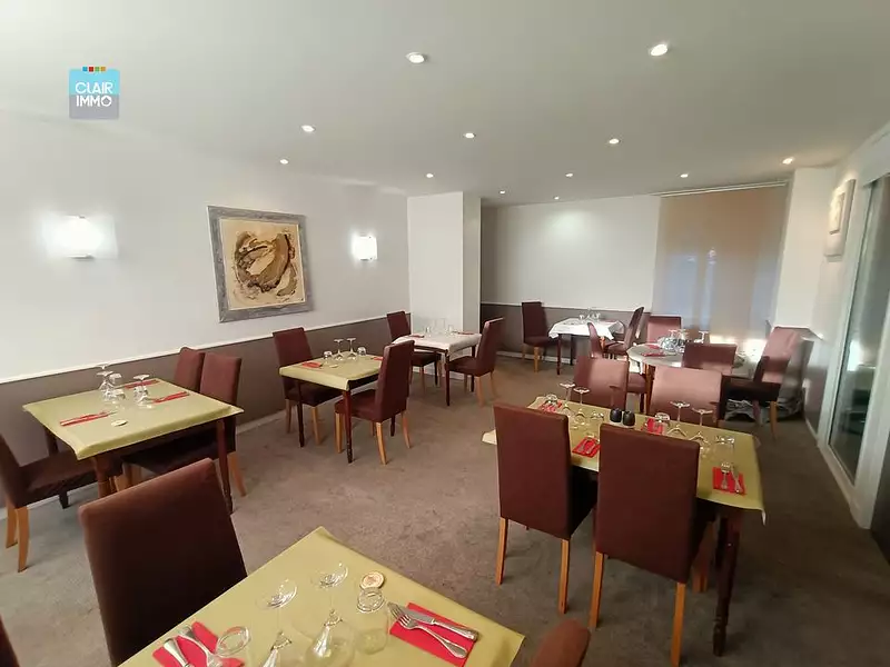 A la Chapelle-de-Guinchay au carrefour de Mâcon en Bourgogne du Sud et Belleville-en-Beaujolais, dans le Rhône, Vend fonds de commerce RESTAURANT semi-gastronomique et authentique de 300 m², un excellent emplacement à deux pas de la gare. Equipés de 2 salles de restauration de 45 couverts chacun, les locaux offrent une très haute qualité d accueil dans l?espace dédié, un cadre agréable et confortable, chaleureux, climatisé et magnifiquement décoré. Le bâtiment offre des équipements de qualité : toilettes et Wc modernes, aux norme PMR, une vaste cuisine toute équipée (piano de cuisson, friteuse, etc..) aux normes et en très bon état, 2 chambres froides, salle de plonges toute au norme, réserve, cave à vins authentique, nombreux espaces de rangement, un grand garage de 65 m². L?extérieur est agrémenté d?une vaste terrasse de 100m² en partie couverte et ombragée, idéale pour les fêtes familiales, repas de groupe, soirées et évènements spéciaux. A l?étage, vous apprécierez un grand appartement d habitation 5 pièces avec 3 chambres, un bureau, un salon séjour avec cuisine ouverte, salle de bain, Wc. CA 2024 : 181 000 euros avec beau potentiel de croissance. Loyer mensuel : 1 200 euros, parkings gratuits à 2 pas. - A découvrir rapidement !!!