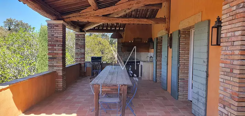 Cette superbe bastide provençale offre une vue panoramique sur la campagne plantourianne. Entièrement rénovée avec grand soin, elle accueille trois logements avec au total 6 chambres et 5 salles de bains. Le propriété est composée d'une bastide principale avec un grand salon cheminée, une salle à manger, une cuisine équipée, un cellier, 1 très grande chambre parentale avec balcon, dressing, salle de bain, 2 chambres avec chacune leur salle d'eau s'ouvrent sur des terrasses. Elle dispose d'une quatrième chambre indépendante avec salle de douche et toilette. Au niveau du rez-de-jardin, un appartement indépendant composé de 2 chambres, d'une salle d'eau, d'une cuisine équipée, d'un salon et d'une terrasse. Propriété idéale pour les rassemblements familiaux et des moments de convivialité. Au coeur des vignes, cette bastide, est située dans un parc privé de 2 hectares aux multiples essences méditerranéennes, un véritable havre de paix avec une superbe piscine chauffée et de très belles fontaines. Son emplacement unique, la sérénité des lieux et son charme rendent cette propriété totalement unique. fosse septique, 2 forages, grande cuve d'eau. M REAL ESTATE disponible 7/7j sur RDV
