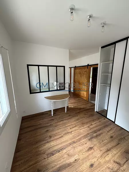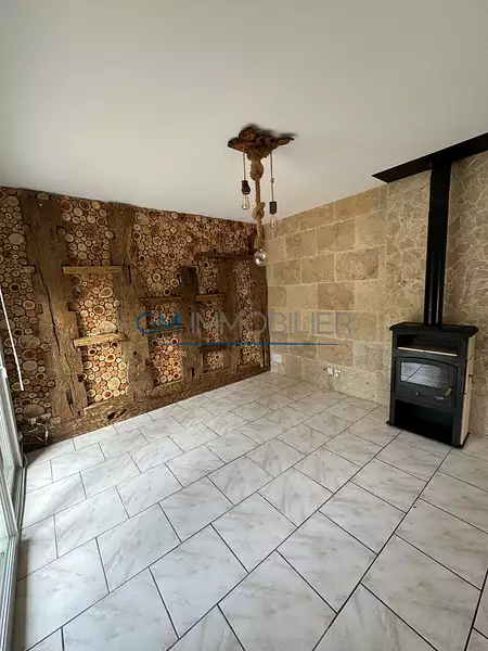 La maison comprend un grand séjour, cuisine ouverte, deux chambres (3 possibles), cellier, salle de bains- Accès entrepot depuis la maison - Maison en parfait état, aucun travaux, matériaux de qualité -