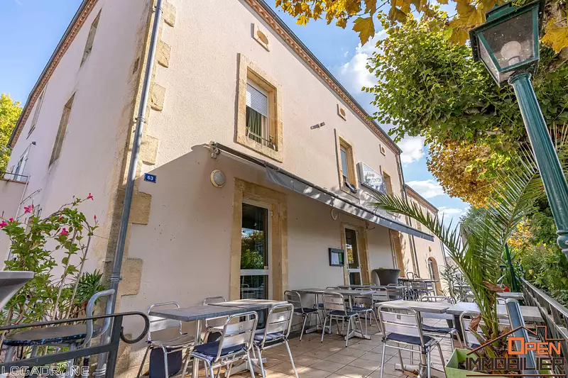 À Vendre : Fonds de Commerce Bar-Restaurant et Chambres d’Hôtes Situé dans un charmant village du Lot-et-Garonne, à seulement 10 km de nombreuses bastides médiévales, nous proposons à la vente un fonds de commerce pour un bar-restaurant avec chambres d’hôtes. Description des Lieux Rez-de-chaussée : •Salle de restaurant et bar (66 m2)•Seconde salle de restaurant (43 m2)•WC (6 m2)•Cuisine professionnelle entièrement équipée (57 m2)•Buanderie•Double chambre froide (4 m2) Extérieur : •Deux agréables terrasses :•Première terrasse de 50 m2•Seconde terrasse de 18 m2•Parking communal situé en face du restaurant. Premier étage : •Logement de fonction (ou autre usage) de 70 m2 Dernier étage : •4 chambres d’hôtes avec salle d’eau privative et WC, entièrement équipées. Prestations et Rénovations •Climatisation rénovée•Store terrasse neuf•Chambres d’hôtes récemment rénovées Pour plus d’informations, merci de nous contacter. - Annonce rédigée et publiée par un Agent Mandataire -