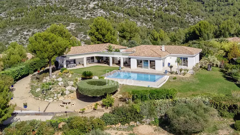 Dans un environnement résidentiel prisé, calme et parfaitement sécurisé sur les hauteurs d’Ollioules, découvrez cette villa de plain-pied d’exception d’une surface habitable de 359 m2, nichée sur un terrain paysager de 4000 m2.