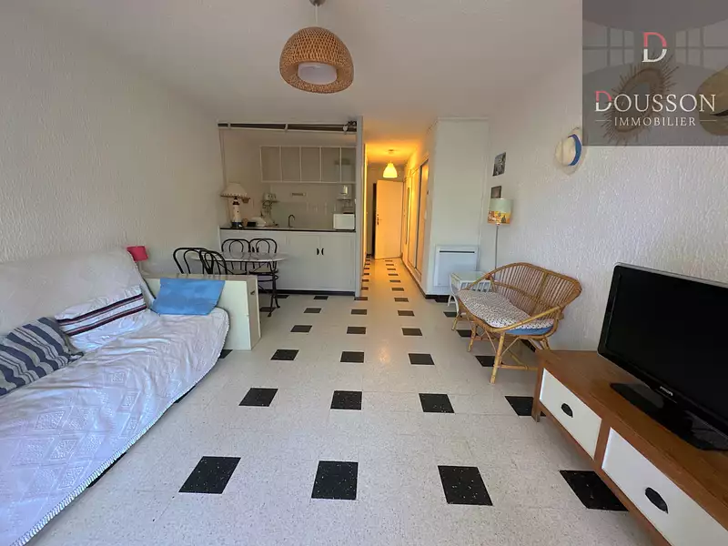 Appartement en rez de jardin situé dans le quartier du Boucanet, a 5 min de la plage et du centre ville ainsi que du super u et commerce.