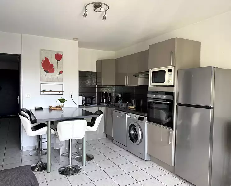 | Cuisine ouverte, équipée | Séjour de 15 m² |