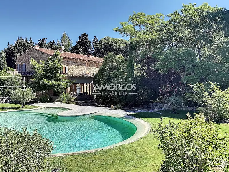 Le salon se prolonge par le jardin d’hiver et la verrière, baignée de lumière, donne la sensation d’être à l’extérieur. Le terrain de 3500 m2 offre à la fois une importante aire de stationnement et un espace de détente et d’agrément, au milieu des vignes, au bord de la piscine aux courbes harmonieuses ou sous ses grands arbres d’essences locales.