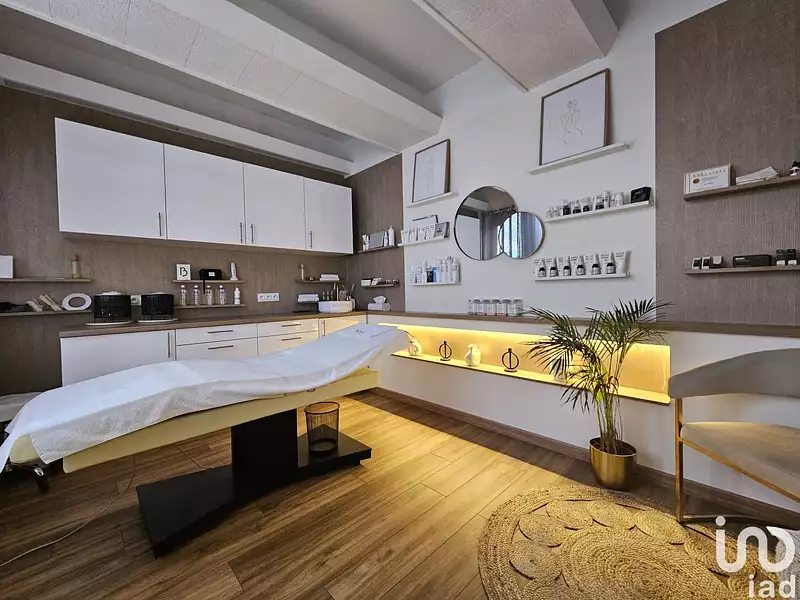 - Aménagement optimal : accueil avec espace d’attente, buanderie équipée, 2 postes manucure, podium pédicure, cabine de soins polyvalente.