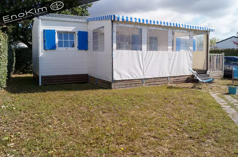 Le mobilhome est posé sur une parcelle de 330 m2 en location pour un montant de 503€ par mois (tranquillité d’esprit : pas d’AG ordinaires, pas d’AG extraordinaires, pas de charges de copropriété, pas de taxe foncière, pas de taxe d’habitation). Une unique taxe de séjour 0.22 ct par personne par jour de présence.