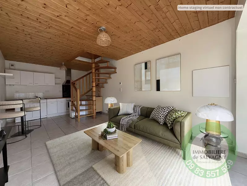 Dans un environnement 'esprit village', au grand calme, proche de toutes commodités, Immobilière de Salvagny vous propose un appartemement type T2 en Duplex de 41 m2 avec terrasse privative. Au rez-de-chaussée, nous avons une pièce à vivre de 21 m2 comprenant une cuisine US. A l'étage, une grande chambre avec placard mural, une salle de bains, WC séparé. Vendu avec le bien : une place de parking. Fenêtres double vitrage. Volets motorisés. Store banne motorisé. Beaucoup de charme et de cachet. Pour toutes visites et renseignements : Sylvie Machado - Immobilière de Salvagny by Pierrefeu Immobilier.