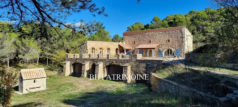 L'orientation de la propriété autour de la terrasse centrale offre un espace de vie extérieur exceptionnel, où l'on peut savourer la tranquillité et profiter d'une vue panoramique sur les environs. Cette terrasse devient le cœur de la propriété, invitant à la détente et aux moments conviviaux tout en tissant un lien harmonieux entre l'intérieur et l'extérieur.