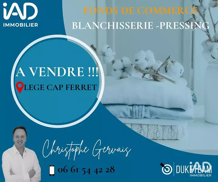 iad France - Christophe Gervais (06 61 54 42 28) vous propose : LÈGE CAP FERRET, Emplacement EXCEPTIONNEL pour cette Blanchisserie / Pressing.