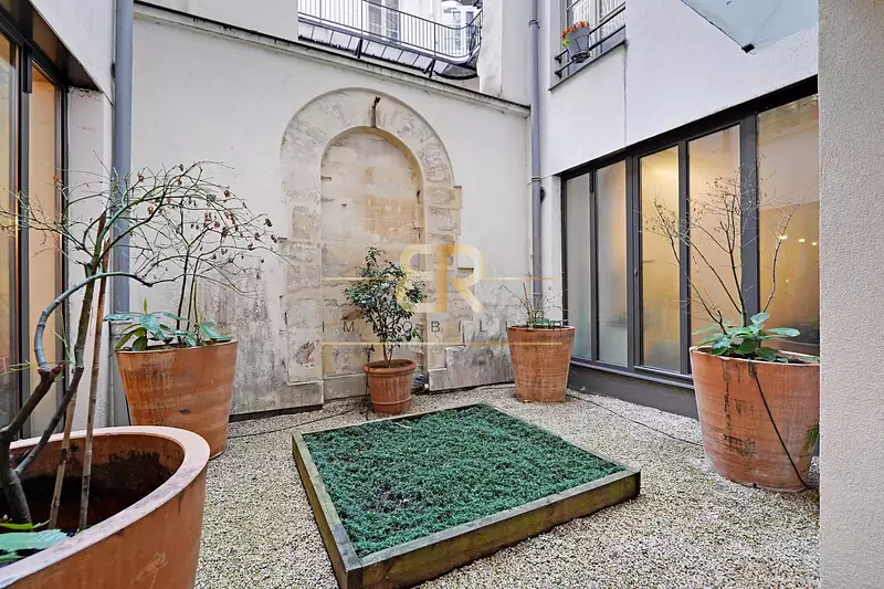 LOCAL COMMERCIAL - PARIS II - Venez découvrir ce véritable cocon plein de CHARME sublimé par des matériaux NOBLES et des POUTRES anciennes associées à une grande HAUTEUR SOUS PLAFOND, situé sur un des quartiers les plus prisé de Paris.Magnifique 2 pièces de 48m2 carrez niché au 2ème étage avec ascenseur d'une copropriété du XVIIème siècle entièrement rénovée.Ce bien TRAVERSANT repensé par un designer se compose d'une entrée desservant une grande pièce de vie avec cuisine américaine entièrement équipée, une chambre spacieuse bénéficiant de deux fenêtres sur cour et de grands placards aménagés ainsi que de liseuses murales individuelles en tête de lit. La salle d’eau est pourvue d’une douche à l’italienne, de rangements sur mesure et un coin buanderie, les wc sont séparés.Pour finir une belle TERRASSE arborée de 5m2 vient compléter ce bien d’exception.Une cave complète le bien.