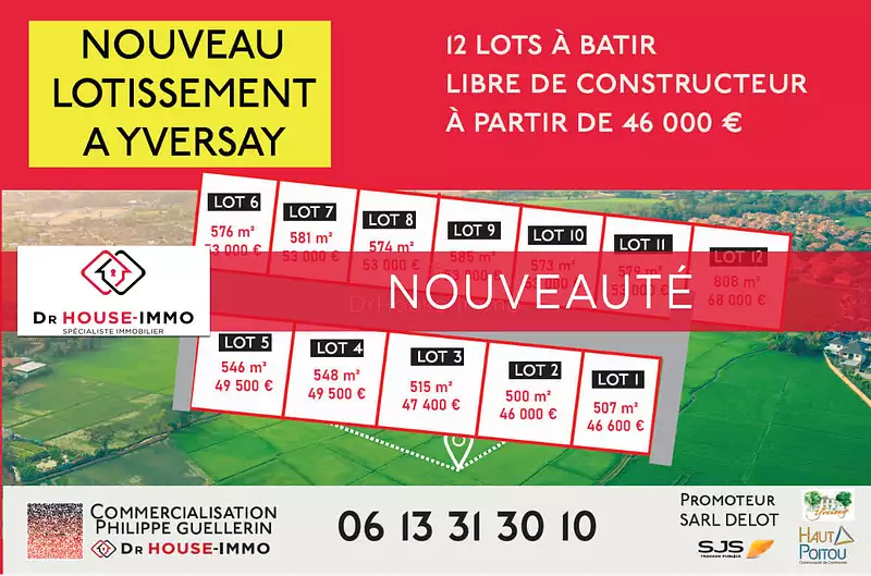 500m du centre bourg de Yversay charmante commune du haut poitou" , dans un lotissement à taille humaine de 12 lots de terrain à batir , terrain de 500m² viabilisé et libre de constructeur , livraison 2026. Profitez de l'opportunité de choisr le votre sur les douze lots disponible. Ce bien vous est présenté par Philippe Guellerin, votre conseiller indépendant Dr House Immo."
