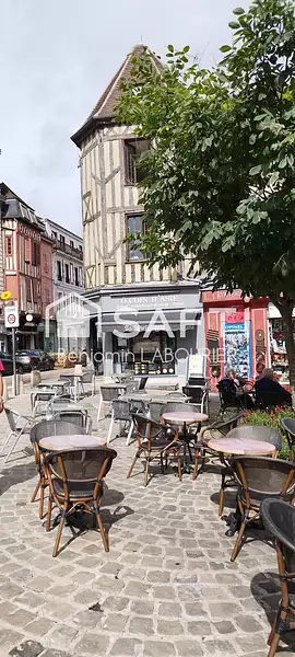 Le local, à colombage, se déploie sur 3 niveaux avec combles aménageables. L’agencement est parfaitement adapté à la restauration rapide, salon de thé ou vente à emporter.