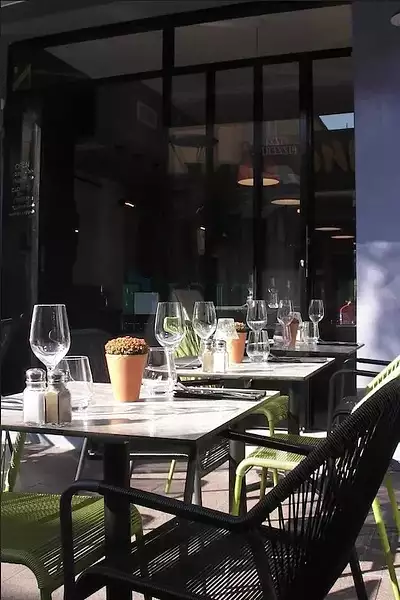 Dès les premiers rayons de soleil, une terrasse extérieure permet d'accueillir 24 couverts pour petit dejeuner et brunch. Ouverture au choix du matin au soir selon l'envie.