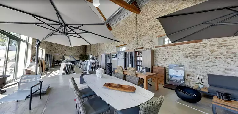 Son esthétique rare, avec des poutres apparentes, des pierres meulières et des jardins japonais, ainsi que la qualité des matériaux, en font un lieu unique. Conforme aux normes PMR, cet ensemble immobilier est parfaitement adapté à des activités accueillant du public ou nécessitant un showroom.
