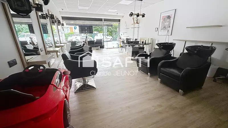 Ce local commercial de 54 m² a été entièrement rénové pour offrir un espace moderne et fonctionnel. Doté d'une surface de plain-pied comprenant 8 m² de réserve et un WC, il est actuellement aménagé en salon de coiffure, idéal pour une reprise d'activité dans ce domaine ou pour toute autre profession médicale. La climatisation assure un confort optimal toute l'année, garantissant ainsi un environnement agréable pour la clientèle.