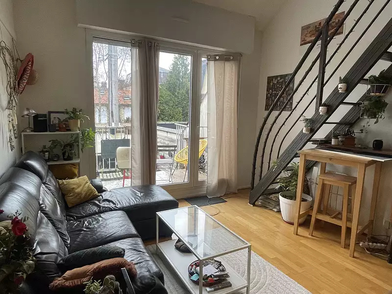En plein coeur du centre-ville, duplex 3 pièces comprenant : entrée, séjour avec belle cuisine aménagée et équipée, chambre avec placard, salle d'eau, wc ind. A l'étage : mezzanine. Terrasse et jardin privatif à l'abri des regards. Parking extérieur.