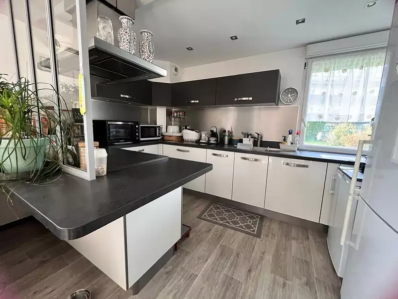 EN EXCLUSIVITE- Appartement T3, rez de jardin, composé de deux chambres, dont une avce porte fenêtre donnant sur une terasse de 7m2, une salle d'eau et wc séparé. Un beau séjour, salle a manger de 24,79m2 avec cuisine ouverte. Le tout sur une parcelle totale 335m2.