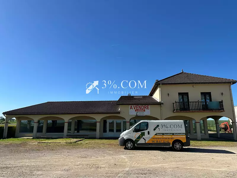L'agence 3%.COM, FLEUROT Jérèmy vous propose de découvrir à la vente ce complexe commercial de 439 m2 de plain-pied avec un grand garage à DOMBASLE EN XANTOIS ainsi qu'un vaste et grand logement de 200 m2 sur les niveaux supérieurs.