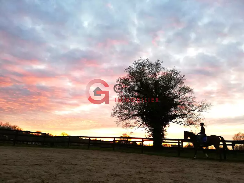 Vous voulez vous occuper de chevaux et souhaitez disposer en plus de revenus locatifs conséquents, cette propriété fera votre affaire, à moins que vous ne l'utilisiez pour un autre projet ... les possibilités sont nombreuses. Proche de tout mais isolé au bout d'un chemin, au calme loin des premiers voisins, Marc Bouillant du Réseau Global Immobilier (0630 079 665) vous propose dans les Landes, sur la commune de Grenade sur l'Adour 40270, cette rare et belle propriété équestre constituée d'un immeuble de rapport ancien bien rénové (performance énergétique C/A, chauffe-eau et radiateurs neufs, compteurs invividuels), composé de 8 appartements 1xT2, 1xT3, 2xT4; 2xT5 + 2 xT2 aménagés dans deux annexes. Une autre annexe d'environ 150 m2 x 2 niveaux possibles, permettrait d'aménager des surfaces locatives supplémentaires, ou tout autre aménagement équestre. Une piscine 10x4 avec un pool house + salle de sport + un local pour 2 roues + autres annexes agrémentent les parties communes. S'ajoutent à cet ensemble des aménagements équestres avec 14 box pour la pension jusqu'à 24 chevaux, 1 carrière de 30x50 m, 1 rond de longe de 18m de diamètre, 3 locaux de sellerie, 1 hangar de stockage fourrage, 5 abris de prés, 6 paddocks, 1 puits et des récupérateurs d'eau de pluie. Le tout posé sur terrain plat de 6 ha + 16 ha contigus à vendre via la SAFER en complément si besoin, avec accès directe à des chemins de randonnées équestres reliant notamment Aire sur l'Adour à Dax (~100 km). Les appartements, majoritairement loués en courts séjours, sont meublés et en excellent état. Le système d'assainissement est récent et dimensionné pour 22 équivalent habitants. Les toitures principales ont été refaites. Revenus locatifs possibles > 120 k€. Revenus équestre possibles > 90 k€ pour pension. Autres revenus d'activité possibles selon projet. Charges annuelles ~20.000 € (élec, eau, TF...). Excellent rendement !