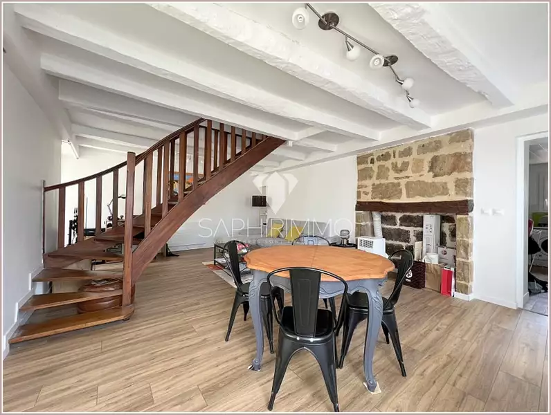 Bel appartement DUPLEX F3 rénové, vendu meublé, situé aux troisième et quatrième étages d'une petite copropriété de 3 lots principaux, comprenant :