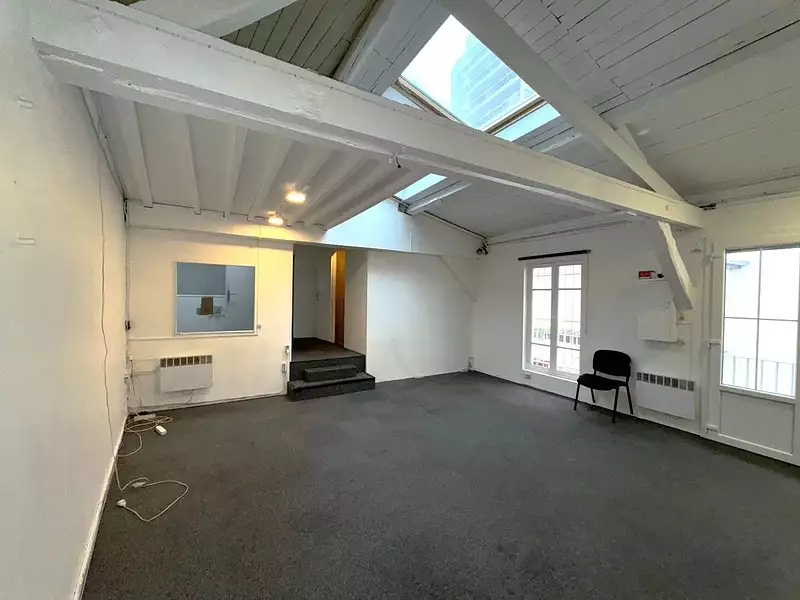 Local Commercial d'une surface de 70,12 M2 loi Carrez avec un plateau principal de 37 M2 situé au premier et dernier étage d'un bâtiment donnant sur cour (très calme) au pied du Metro Vaugirard. Ce local atypique (Poutres, Velux..) est idéal pour une activité de bureau ou show-room - WC avec lave mains. Travaux d'isolation de toiture et couverture réalisés en 2017