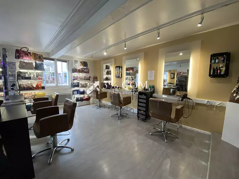 Local avec double vitrine composé de 3 espaces (coiffage, shampoing et réserve avec sanitaire/buanderie).