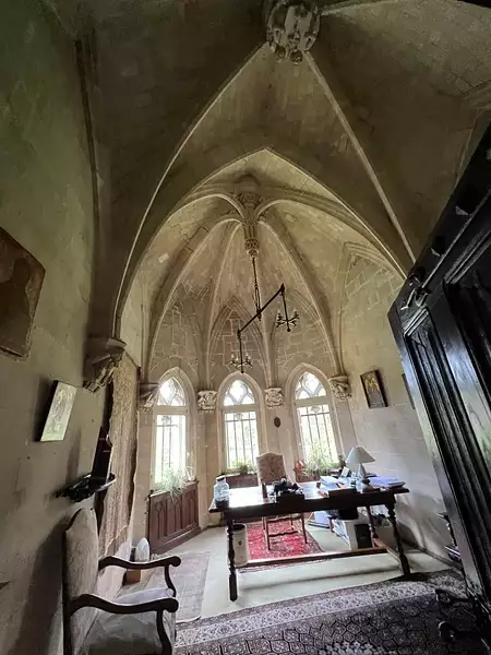 A vendre , proche de Chaufour-lès -Bonnières ( Yvelines ) et de Douains ( Eure ), chateau 755 m2 habitables , avec 28 pièces , 12 chambres , 7 salles de bain , 2 escaliers dont un dans la tour Ouest à archères , une chapelle ornée de moulures des apotres sur les arches ... Ce remarquable chateau post- Renaissance , non classé , dans un état irréprochable , possède de remarquables ornements : plafonds à caissons peints du XIX e , portes scultées , lambris , boiseries , carrelage à cabochons , carreaux de mosaique ... En exterieur , on trouve une maison de garde avec 6 pièces , écuries , grange , puits , piscine extérieure , tennis quick ... Un terrain de 26 hectares , avec parc à l' anglaise desservi par une longue allée . Aucun travaux à prévoir . A 1 h de Paris -Porte Maillot , par l' A 13 « Les informations sur les risques auxquels ce bien est exposé sont disponibles sur le site Géorisques : www.georisques.gouv.fr »