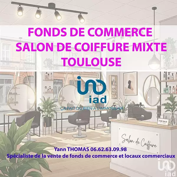 iad France - Yann Thomas (06 62 63 09 98) vous propose : Fonds de commerce Salon de coiffure mixte en parfait état!