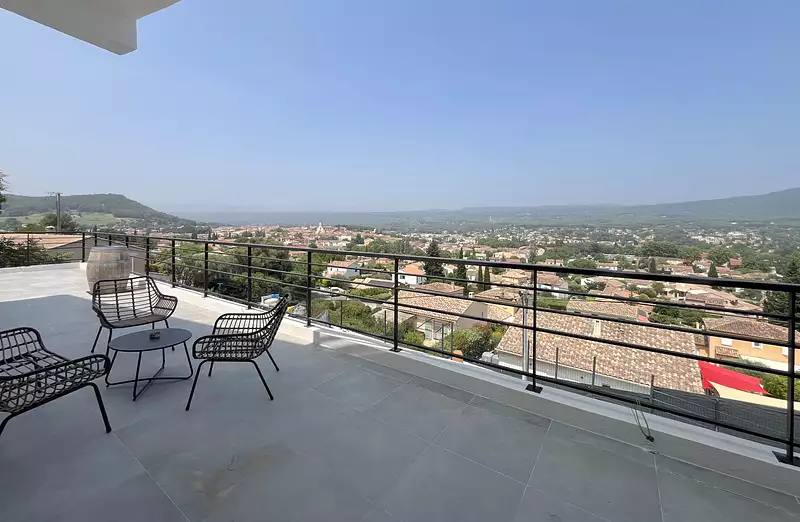 Perché au premier étage d’une élégante villa, ce T3 de standing s’ouvre sur une terrasse de 70 m2, véritable belvédère dominant le village du Beausset et la Sainte-Baume. La lumière habille la vaste pièce de vie où la cuisine s’intègre avec discrétion et raffinement. Deux chambres confortables, une salle de bain soignée et une buanderie complètent cet intérieur pensé pour le bien-être.