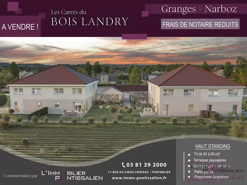 Les Granges Narboz - Les Carrés du Bois Landry : Duplex de 81,29 m2 avec terrasse et jardin composé d'une entrée, d'une pièce de vie et d'une salle d'eau. A l'étage : trois chambres, un dégagement et une salle de bains.