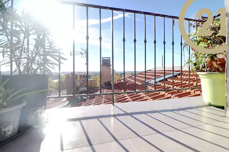VENTE EN EXCLUSIVITE FREJUS CENTRE - Rare à la vente - Bel appartement 3 pièces de 85 m2 en duplex entièrement rénové et idéalement situé au dernier étage d'un immeuble au coeur du centre historique de Fréjus. Cet appartement offre un hall d'entrée, un séjour/salle à manger doté d'une belle hauteur sous plafond avec cuisine ouverte équipée, une grande chambre de 23 m2, une salle d'eau avec WC. A l'étage : une grande chambre de 16 m2 avec sa salle d'eau et son WC. La chambre offre un accès sur un balcon avec vue dégagée jusqu'à la mer. Très belles prestations. Proximité immédiate des commerces, du centre et des plages. Nombreux parkings situés à proximité. Copropriété de 5 lots. Charges annuelles faibles.
