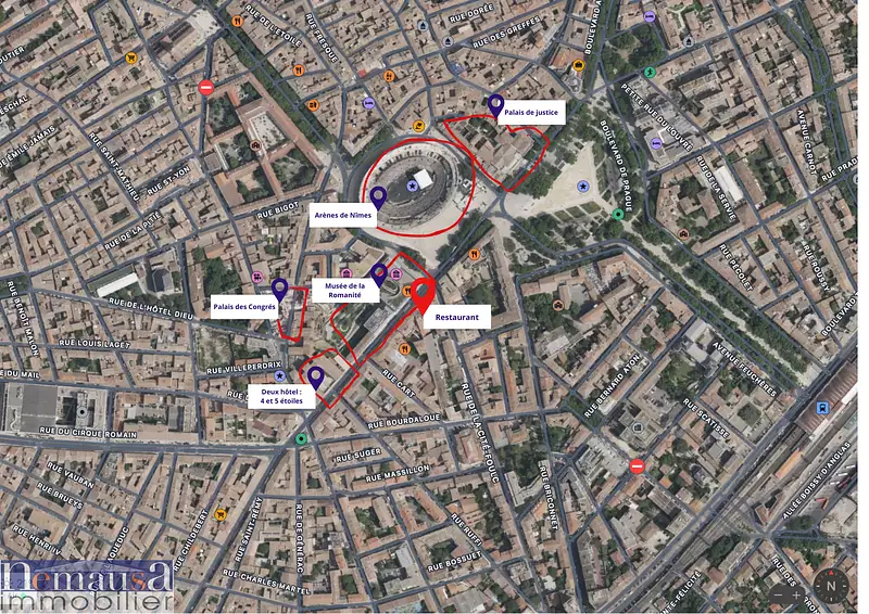 NEMAUSA IMMOBILIER vous propose à la vente ce fonds de commerce restaurant, idéalement situé en face des Arènes de NÎMES, rue de la République à coté du Musée de la Romanité, du futur Palais des Congrès et du Grand Hôtel Dieu 5 étoiles. La clientèle y est nombreuse et fidèle depuis plusieurs années.