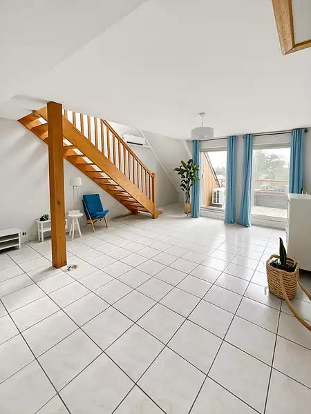 Ce duplex lumineux occupe le 1er et dernier étage d'une résidence bien entretenue et sans travaux.