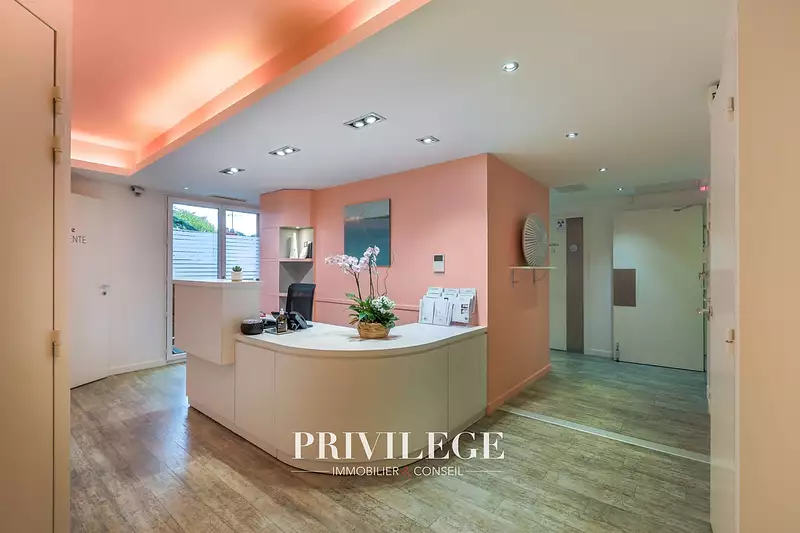 Actuellement aménagé en cabinet dentaire, il se compose d’un hall d’accueil, d’une salle d’attente, de WC, d’une cuisine équipée, d’une salle de stérilisation, d’une salle radio et de deux cabinets principaux.