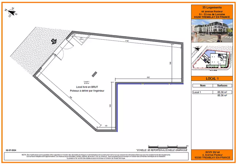 Saisissez l'opportunité d'acquérir ce local commercial de 85 m2, idéalement situé à Tremblay-en-France. Ce bien, de plain-pied et accessible aux personnes à mobilité réduite (PMR), est parfait pour divers types d'activités commerciales. Caractéristiques du bien : - Superficie : 85 m2 - Accès PMR : Conçu pour accueillir tous les clients - État : Construction récente, respectant les normes modernes - Vente des murs libres : Flexibilité pour l'acquisition et l'exploitation - Connectivité : Fibre optique disponible dans l'immeuble, garantissant une connexion rapide et fiable Avantages : - Emplacement stratégique dans une zone en plein développement, attirant un flux constant de clients - Idéal pour des activités variées : restauration, bureaux, commerces de détail, etc. - Opportunité d'optimiser votre investissement avec un bien prêt à l'emploi Conditions : - Prix : Indiqué hors taxe, offrant une transparence sur l'investissement à réaliser - Référence : 96 Ne manquez pas cette occasion unique d'investir dans un local commercial dans une zone dynamique. Contactez-nous dès aujourd'hui pour plus d'informations ou pour organiser une visite !