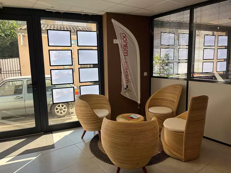 Entrée sur salon d’accueil, un bureau ouvert pour l'accueil, deux bureaux indépendants et en enfilade deux autres bureaux, coin cuisine et WC indépendant.