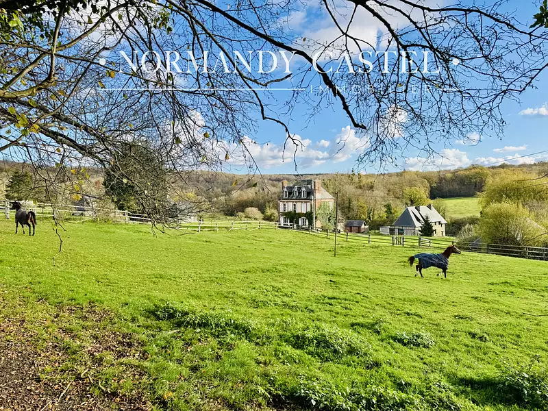 Normandy Castel vous présente ce domaine privé situé à 10min de Deauville et construit sur plus de 9 hectares. Cet ensemble immobilier bénéficie d'un environnement tout à fait exceptionnel exposé sud-est et se compose : d'une grange aménageable avec box, d'une maison d'habitation en colombages, d'une maison de maître et de batiments agricoles composés notamment de box.