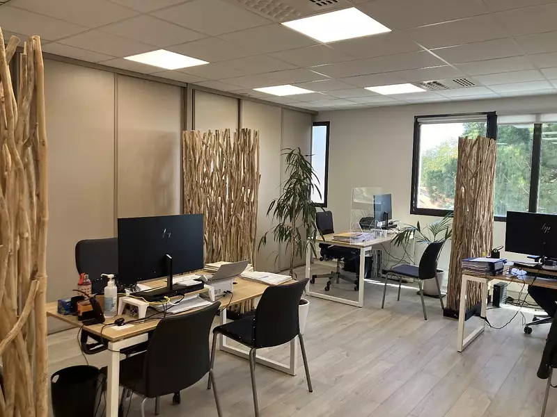 Béziers Carré d'hort en EXCLUSIVITE. Local lumineux de 90m² composé de la manière suivante. 6 bureaux en open-space - WC séparé - un espace cuisine - climatisation - ascenseur. 2 garages en sous-sol. Entièrement refait à neuf. Produit de qualité disponible de suite.