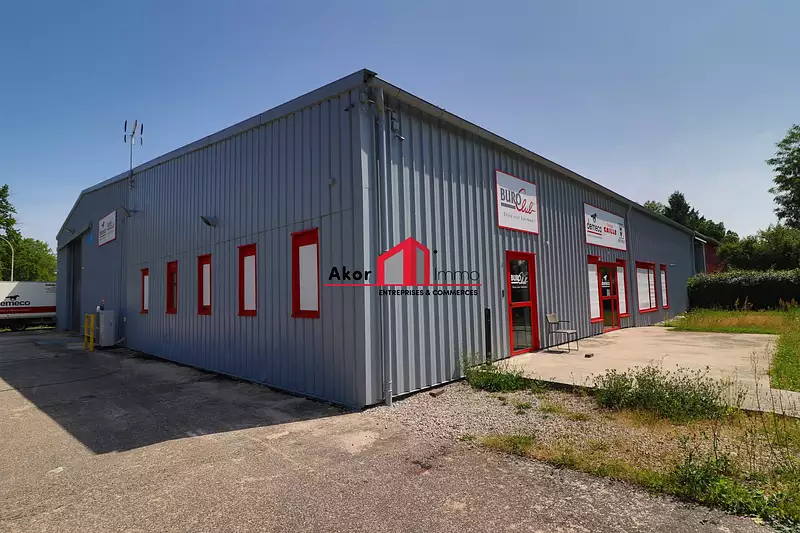 Ensemble immobilier composé d'un espace de 6 bureaux, salle de réunion, sanitaires de 197 m² permettant un accès indépendant, et d'un entrepôt de 780 m² avec deux portes sectionnelles.