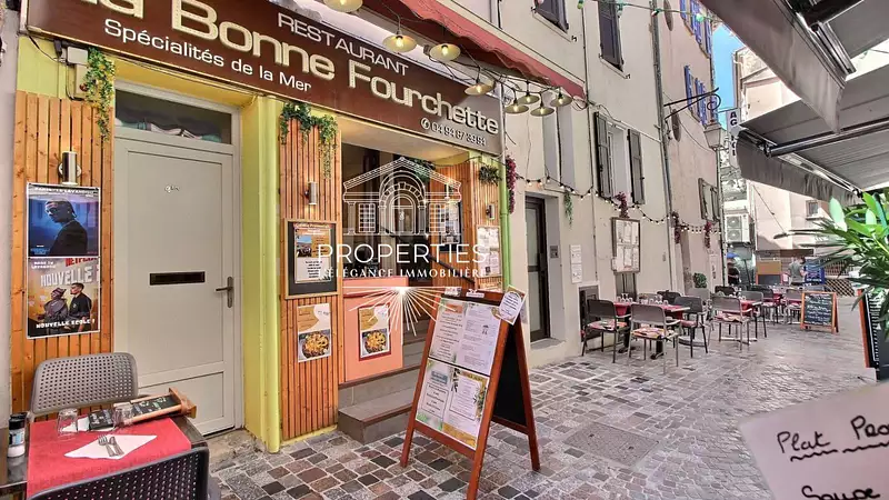 PROPERTIES Le Lavandou vous présente à la vente ce fonds de commerce de restauration en emplacement numéro 1. Ce superbe outil de travail situé au coeur du village, sur un axe passant dans les rues piétonnes du Lavandou et tenu depuis plus de 15 ans par les mêmes propriétaires, sa clientèle fidèle locale et saisonnière fait de cet établissement, un restaurant pérenne et réputé. Surface du restaurant 84 m°+ réserve indépendante de10m, aucun CDI à reprendre, 70 couverts (24 couverts et terrasse rue piétonne, 22 couverts terrasse vue mer), aucun travaux à prévoir, grande surface de stockage, traversant, une terrasse rue piétonne, une terrasse vue mer, bail neuf 2023. Affaire idéale pour un couple. (7.05 % honoraires TTC à la charge de l'acquéreur.)