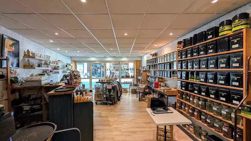 Surface de vente modulable de 40m² + bureau arrière de 14m², espace stockage en mezzanine de 18m² et un w.c. avec lave mains.