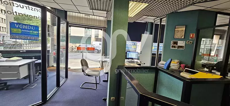 À droite de l'entrée d'immeuble, en angle de rues, un second local de 4 bureaux, offrant un plateau de 74 m² et nu de murs porteurs, point fort permettant de repenser librement l'espace selon l'activité ou l'occupation. Ce lot est complété de deux anciennes caves réaménagées en sous sol de la copropriété.
