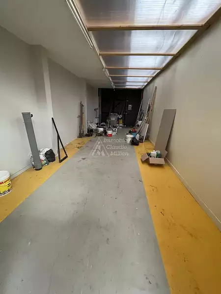 L'espace est actuellement cloisonné en plusieurs pièces mais il est possible d'abattre les cloisons pour profiter d'un plateau de 6 mètres de large sur 30 mètres de long. Il y a déjà un compteur d'eau et un compteur électrique ainsi que le tout à l'égout.