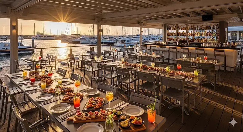 Cet établissement reconnu profite d'un emplacement rare, face à la marina et au coucher de soleil. Grande terrasse en bois d'environ 170 m², salle intérieure, bar central et cuisine pro entièrement opérationnelle : un outil de travail prêt à exploiter. L'activité tourne autour des petits-déjeuners, tapas, cuisine du monde et soirées DJ. Le chiffre d'affaires dépasse 1,6 M euros et reste stable, porté par un flux constant de touristes et d'habitués. AOT de 12 ans en cours jusqu'en 2033 renouvelable. Le fonds inclut le matériel, l'aménagement, l'enseigne et la clientèle. Une opportunité solide dans un secteur très recherché. Honoraires uniquement à la charge de l'acquéreur Prix de vente TTC HAI : 1 012 080 euros Pour en parler ou organiser une visite : 0692 76 79 97. (5.43 % honoraires TTC à la charge de l'acquéreur.)