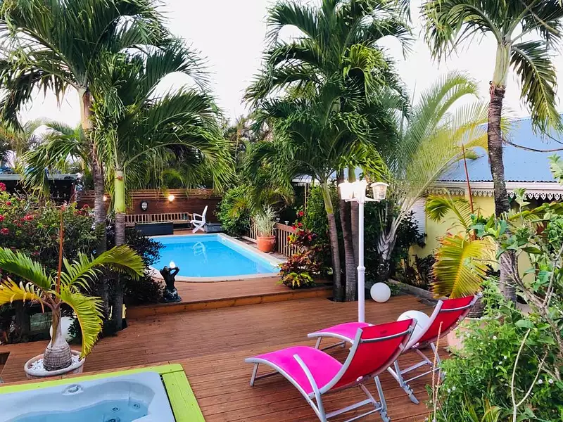 Opportunité unique d'acquérir une magnifique résidence de tourisme située à seulement 5 minutes de la célèbre plage de la Caravelle, en Guadeloupe.
